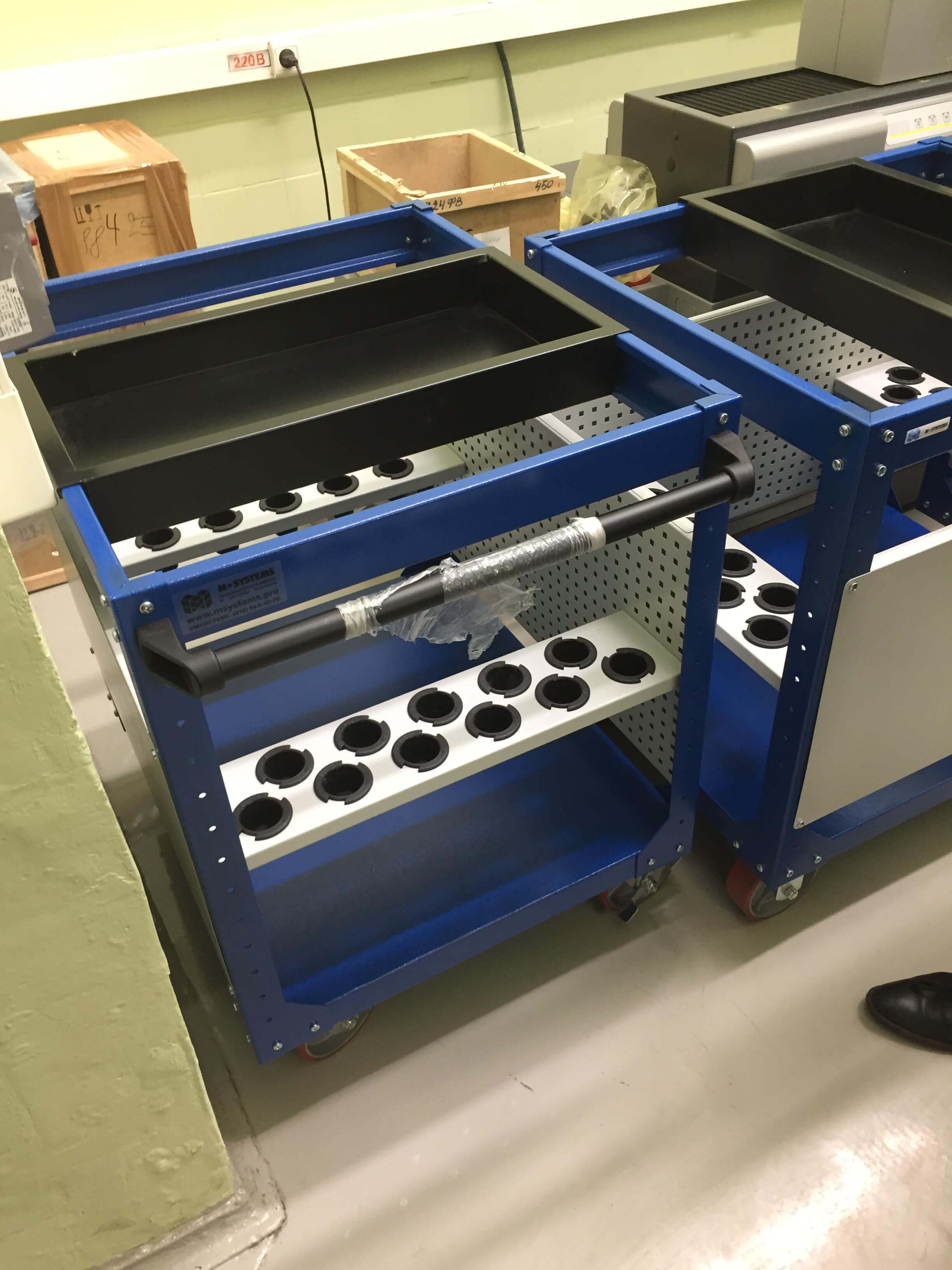 • Тележка в комплекте с полками для инструмента с хвостовиком типа ISO/SK 50