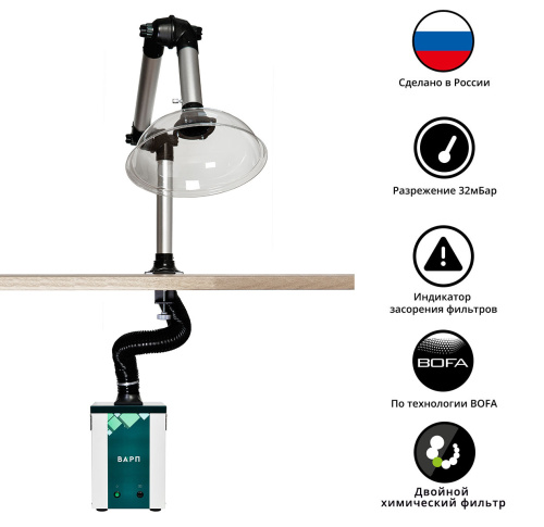 Комплект дымоуловителя ВАРП ВП25 с хим. фильтром, с шарнирным дымоприемником 63мм с крепл. к столу